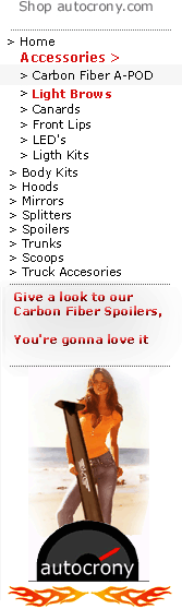 Carbon Fiber Spoilers, Wings Truck Accesories Scoops Trunks Spoilers Splitters Mirrors Hoods Accesories Body Kits LEDS Carbon Fiber Front Lips Carbon Fiber Canards Light Kits Carbon Fiber Light Brows Home Carbon Fiber A-POD